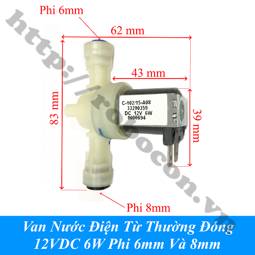 Van nước điện từ thường đóng 12vdc 6w phi 6mm và 8mm là loại van điện thường đóng, được đóng ngắt bằng từ trường, khi cấp nguồn 12v DC thì van sẽ tự động mở, còn bình thường van luôn ở trong trạng thái đóng.
