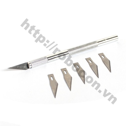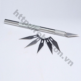 PKK126 Dao Trổ - Dao Khắc Kèm 5 Lưỡi Phụ bao gồm 1 dao trổ cán kim loại dài 15cm và 1 hộp đựng 5 lưỡi dao đi kèm