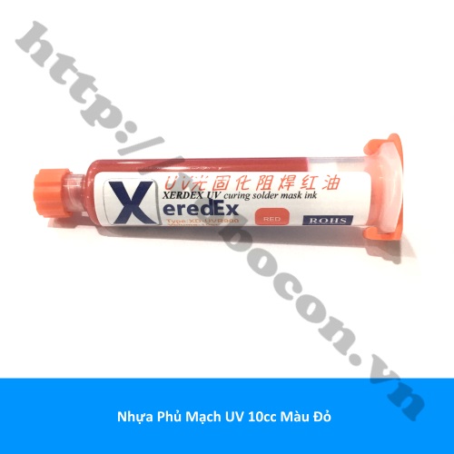- Nhựa phủ mạch UV 10cc màu đỏ hay keo UV red phủ mạch thích hợp trong việc sửa chữa các dấu vết, đường mạch bị hỏng tạo ra các đường mạch trơn tru trên bảng mạch PCB.