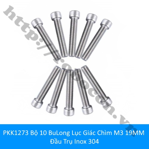 PKK1269 Bộ 10 BuLong Lục Giác Chìm M3 19MM Đầu Trụ Inox 304