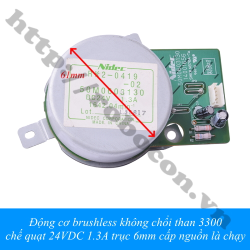 - Động cơ brushless không chổi than 3300 Nidec 24v 1.3A 31w hay động cơ BLDC là động cơ không chổi than dùng để chế quạt ắc quy, quạt tích điện, máy mài, chế động cơ phát điện 3 pha.