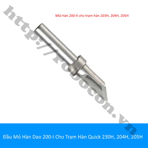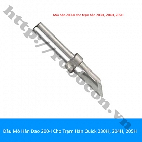 - Đầu mũi hàn dao 200-K cho tay hàn, mỏ hàn nhiệt, trạm hàn quick 203H, 204H, hunter 203H, 204H là phụ kiện đặc biệt sử dụng riêng cho tay hàn, cho mũi hàn đẹp và mịn hơn.