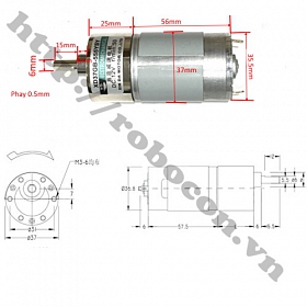 Sơ Đồ Động Cơ giảm Tốc Trục D XD37GB-555YSY 12V 50RPM(Trục Lệch)