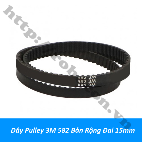 - Dây pulley 3M-582 bản rộng đai 15mm (còn được gọi timing belt) là loại dây curoa có cơ cấu truyền tải cho động cơ, làm máy mài, máy cắt mini. Bulley 582 còn có thể làm phụ kiện cho máy cưa tự chế, làm bộ truyền chuyển động. Với bước răng 3mm được dùng để kết hợp với pulley để truyền chuyển động, động cơ 777, động cơ 795
