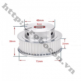 Kích Thước Pulley Bánh Răng Nhôm 5M40 Răng Bản Rộng Đai 21mm Trục 8mm