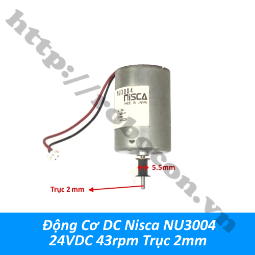 - Động cơ DC Nisca NU3004 24VDC 43rpm trục 2mm cho lực kéo mạnh, mô-men xoắn nhỏ là động cơ không thể thiếu trong sự vận hành của máy móc có công suất vừa phải bởi động cơ giúp quay và tăng momen xoắn của trục.