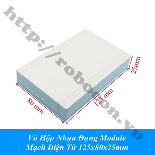 Vỏ hộp nhựa đựng module, linh kiện 125x80x25mm (plastic box) là sản phẩm dùng để bảo vệ mạch điện của bạn khỏi các tác nhân môi trường gây hỏng hóc, nhiễu linh kiện do môi trường xung quanh, giúp dự án của bạn có tính thẩm mĩ cao.