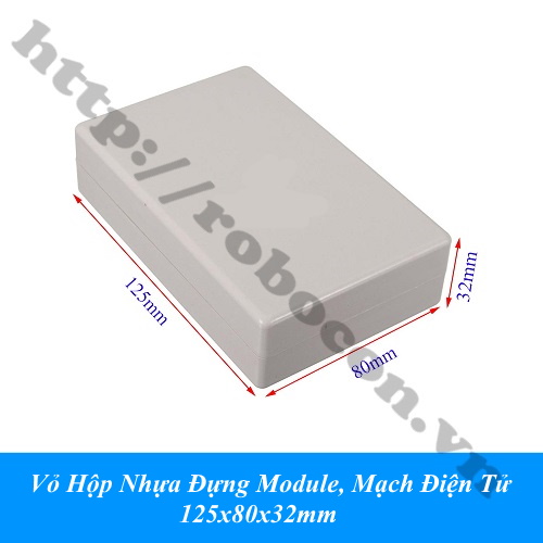 Vỏ hộp nhựa đựng module, mạch điện tử 125x80x32mm (plastic box) là sản phẩm dùng để bảo vệ mạch điện của bạn khỏi các tác nhân môi trường gây hỏng hóc, nhiễu linh kiện do môi trường xung quanh, giúp dự án của bạn có tính thẩm mĩ cao.
