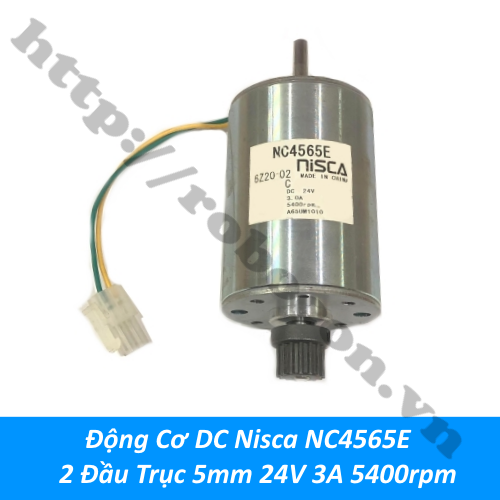 - Động cơ DC nisca NC4565E hai đầu trục 5mm 24V 3A 5400rpm cho lực kéo mạnh, moment xoắn cao là động cơ không thể thiếu trong sự vận hành của máy móc.