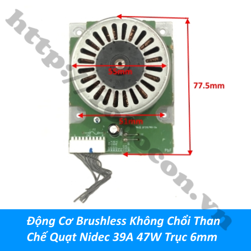 - Động cơ brushless không chổi than chế quạt 39A 47W trục 6mm hay động cơ BLDC là động cơ không chổi than dùng để chế quạt ắc quy, quạt tích điện, máy mài, chế động cơ phát điện 3 pha
