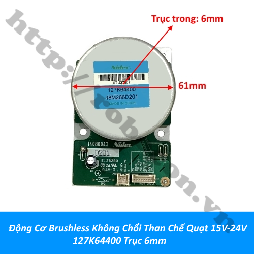 Kích Thước Động Cơ Brushless Không Chổi Than Chế Quạt 15V-24V 127K64400 Trục 6mm