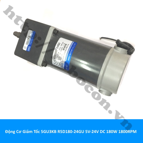 - Động cơ giảm tốc 5GU3KB R5D180-24GU 5V-24V 180W 1800RPM là động cơ giảm tốc cho lực kéo momen xoắn cao.