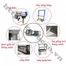 + Tời điện, ròng rọc, cửa điện, cửa tự động, dây phơi thông minh, mái sân tự động.