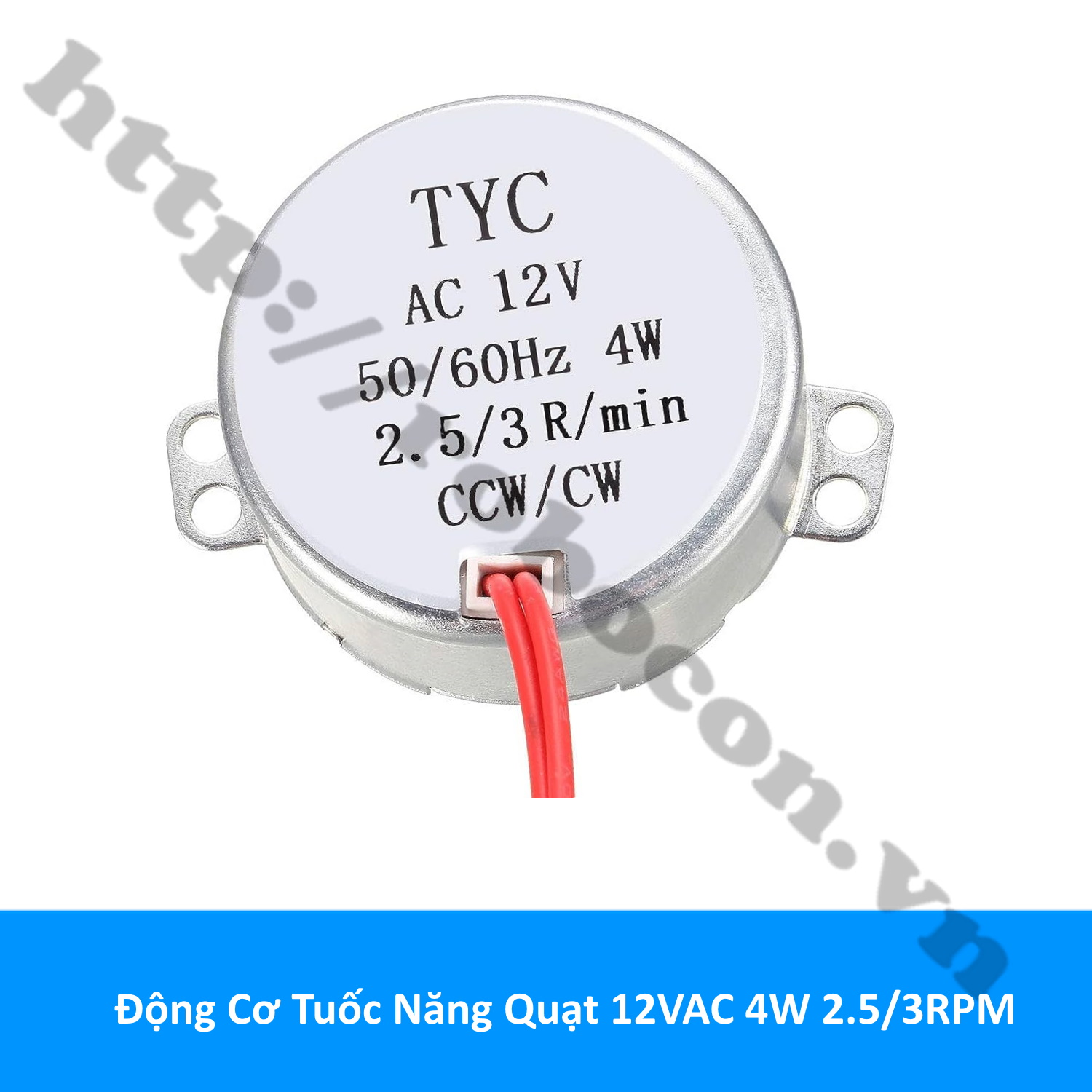 - Động cơ tuốc năng quạt 12V AC 4W 2.5/3 vòng/phút được sử dụng trong quạt hơi nước, quạt cây, quạt treo tường với chức năng điều chỉnh hướng gió đảo chiều gió, đảo quạt.