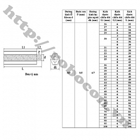 Kích Thước Trụ Đồng Lục Giác M3x25+6 Đực Cái