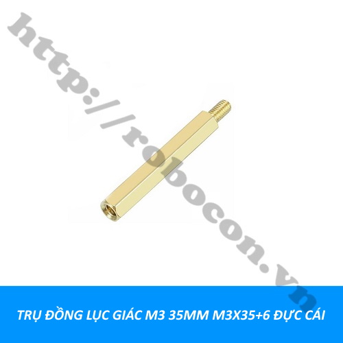 Trụ đồng lục giác M3x35+6 đực cái hay cọc đồng lục giác có ren M3x35+6 là loại cọc được làm bằng đồng với 2 đầu ren âm dương tổng chiều dài 41mm.