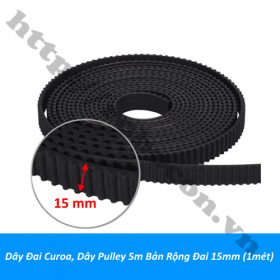 - Dây curoa 5M bản rộng đai 15mm làm cơ cấu truyền tải cho động cơ, truyển tải cơ cấu bánh răng hộp số làm máy mài, máy cắt mini. Làm phụ kiện cho máy cưa tự chế, làm bộ truyền chuyển động. Được dùng để kết hợp với pulley bánh răng nhôm để truyền động.