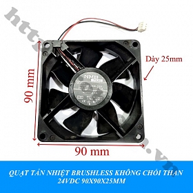 - Quạt giải nhiệt brushless 24V 90x90x25mm được cấu tạo từ động cơ không chổi than bền bỉ, chạy êm, không gây tiếng ồn, với chất lượng tốt nhất thị trường dùng để tạo gió, làm mát, tản nhiệt cho các thiết bị điện tử,…