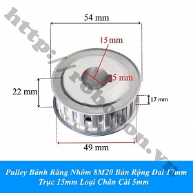 Pulley Bánh Răng Nhôm 8M20 Bản Rộng Đai 17mm Trục 15mm Loại Chân Cài 5mm