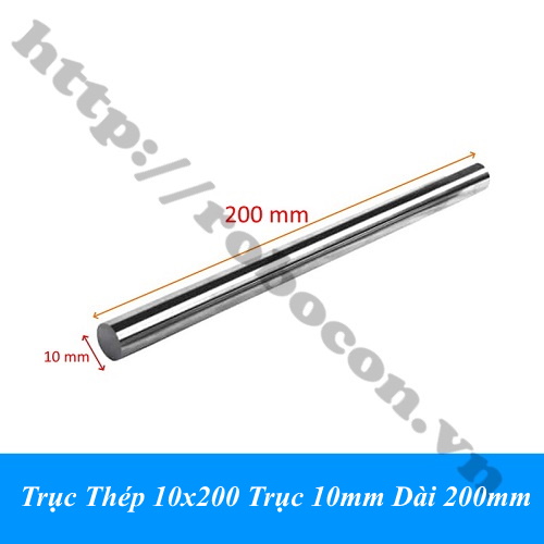 Trục Thép 10x200mm dùng để làm trục bánh xe cho robot, phụ kiện cho máy cưa tự chế, làm bộ chuyền chuyển động, dùng trong truyền động lên xuống của cơ cấu trục