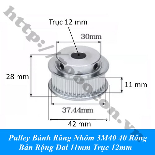 - Pulley bánh răng nhôm 3m40 bản rộng đai 11mm trục 12mm là cơ cấu truyền tải cho động cơ, làm máy mài, máy cắt mini. Làm phụ kiện cho máy cưa, máy khoan tự chế, làm bộ chuyền chuyển động cho động cơ 775, 795, máy CNC, máy in 3D, RC, máy nổ, máy bay điều khiển, tàu thủy…