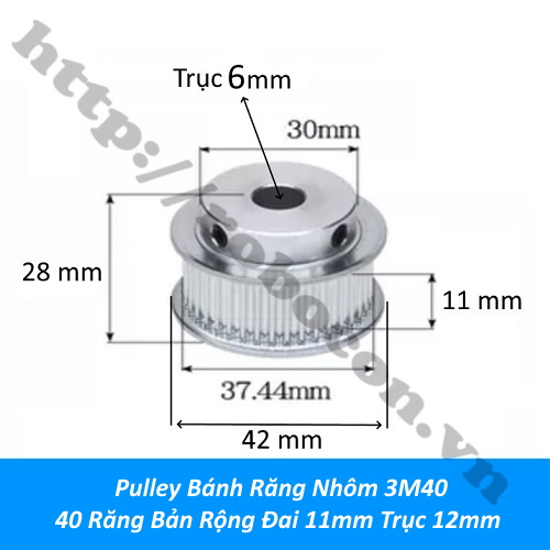 Pulley Bánh Răng Nhôm 3M40 40 Răng Bản Rộng Đai 11mm Trục 6mm
