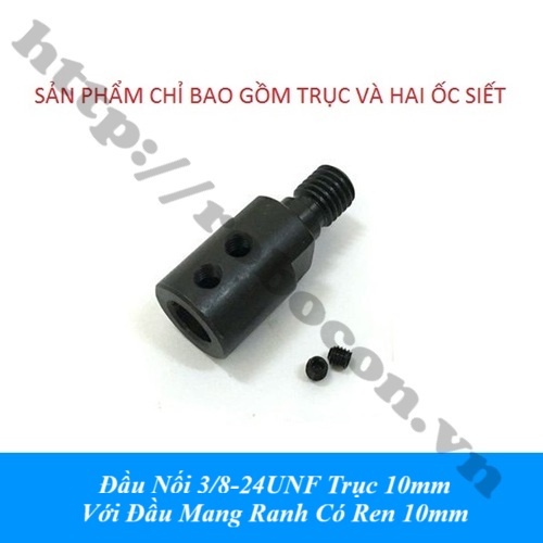 Đầu Nối 3/8-24UNF Trục 10mm Với Đầu Mang Ranh Có Ren 10mm là phụ kiện cho máy khoan, máy mài tự chế với công dụng nối từ trục động cơ 10mm ra đầu mang ranh ren 3/8-24unf