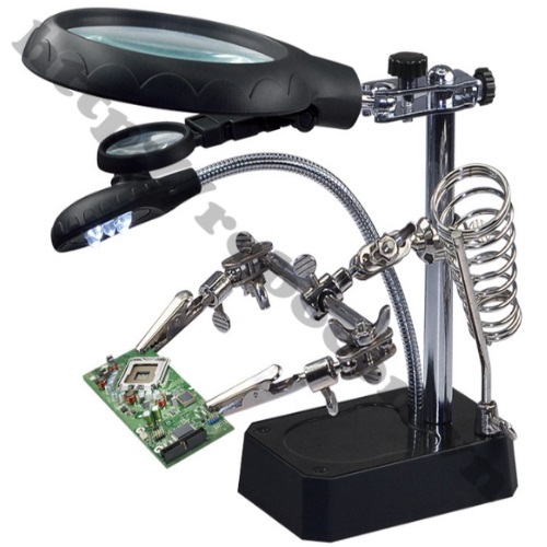 1. Kẹp mạch có 2 kính lúp, có LED là một công cụ sản phẩm hỗ trợ hữu ích giúp cố định mạch in để: Hàn linh kiện điện tử, sửa chữa, kiểm tra, điện tử công nghiệp, phòng thí nghiệm, y tế, nhận dạng của ngọc bích, tiền xu, đồ trang sức, ngọc bích, sứ, đồng thanh, tem, đồ cổ và nhiều lĩnh vực khác.