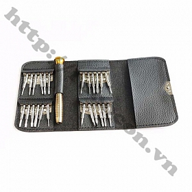 Bộ sản phẩm gồm: 25 đầu vít đầy đủ các dạng đầu như dẹt, 2 lỗ, tam giác, lục giác, các loại đầu từ 3 đến 6 cạnh… Đặc biệt bao đựng bằng da nhỏ gọn, tiện lợi và lịch sự. Bạn sẽ không còn phải lo lắng sửa chữa đồ điện tử khi gặp phải những con ốc, vít siêu nhỏ.