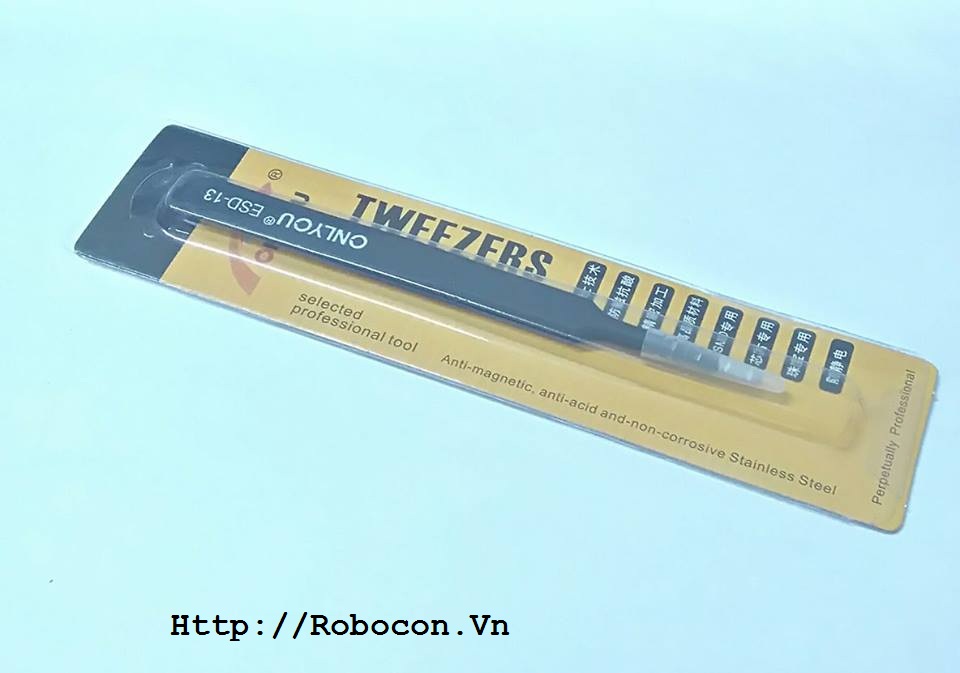 Kẹp linh kiện ESD-13 của Only you được thiết kế với đầu kẹp dẹt, dài 120mm. Kẹp linh kiện ESD-13 có bọc lớp nhựa cứng màu đen bên ngoài để tăng độ nhám, giảm độ trơn trượt cho tay cầm, thuận tiện để sử dụng.