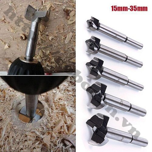 Trọn bộ gồm 5 mũi có các kích thước 15, 20, 25, 30, 35mm. Cốt trục mũi phay 8 - 10mm.