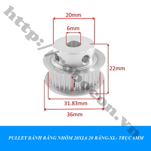 PKK335 Pulley Bánh Răng Nhôm 20XL6 20 Răng-XL- Trục 6mm