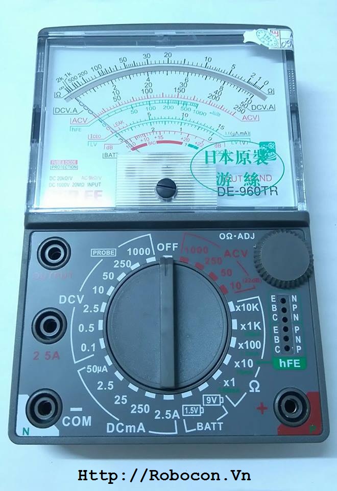 Đồng hồ đo điện tử DE-960 là loại đồng hồ kim vạn năng được dùng phổ biến nhất vì nhiều chức năng, dễ sử dụng.