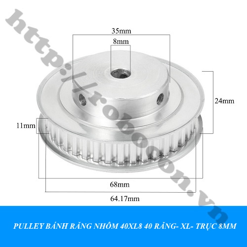 PKK526 Pulley Bánh Răng Nhôm 40XL8 40 Răng- XL- Trục 8mm sử dụng trong bộ truyền chuyển động