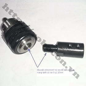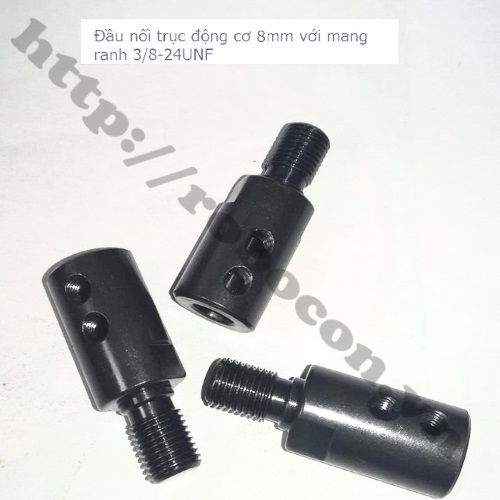 PKK551 Đầu Nối 3/8-24UNF Trục 8mm Với Đầu Mang Ranh Có Ren 10mm là phụ kiện cho máy khoan, máy mài tự chế với công dụng nối từ trục động cơ 8mm ra đầu mang ranh ren 3/8-24unf