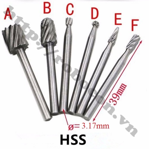Bộ 6 Mũi Khắc Mài HSS Trục 3.17mm