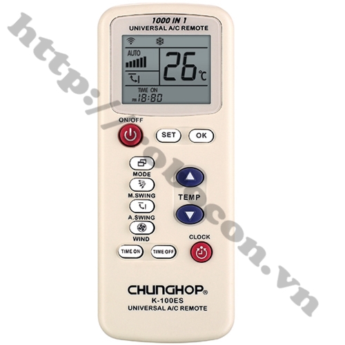 Điều khiển điều hòa đa năng K-100ES được sử dụng cho mọi loại điều hòa với các thương hiệu nổi tiếng như: Toshiba, Mitsubishi, Samsung, Panasonic, Daikin, Sharp ... lên đến 1000 thương hiệu trên thế giới.