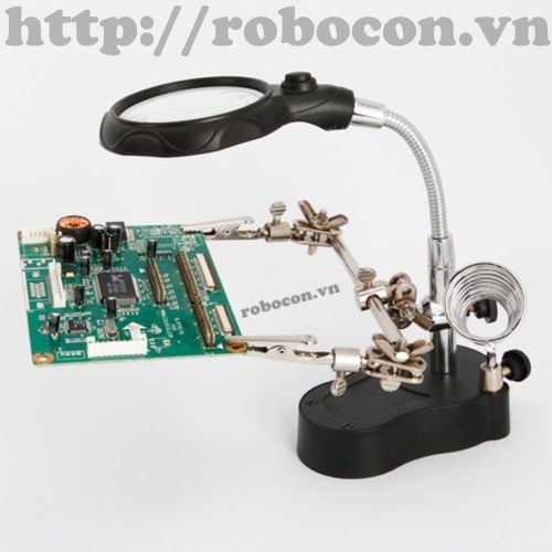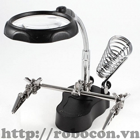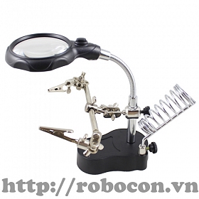 + Kính lúp có đèn chiếu sáng giúp bạn có thể hàn linh kiện vào ban đêm.