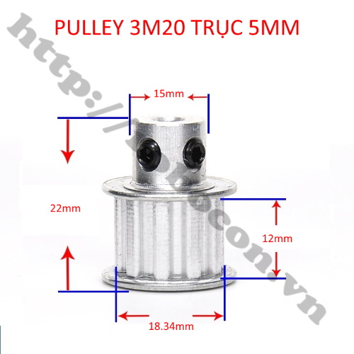 PKK736 Pulley Bánh Răng Nhôm 3M20 20 Răng Loại BF Rộng Đai 11mm Trục 5mm hay puli trục 5, buli trục 5 li, puly 20 răng chuẩn 3M sử dụng rộng rãi trong máy công cụ, dệt vải gia đình, in ấn, bao bì thực phẩm, dây và cáp điện, thiết bị đo đạc, hóa dầu, viễn thông và các ngành công nghiệp khác trong cơ cấu ổ đĩa vành đai.