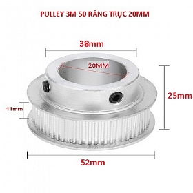 PULLEY BÁNH RĂNG NHÔM 3M50 50 RĂNG RỘNG ĐAI 11MM TRỤC 20MM