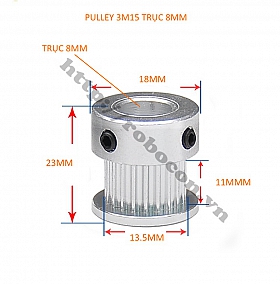 PKK749 PULLEY BÁNH RĂNG NHÔM 3M15 15 RĂNG BẢN RỘNG ĐAI 11MM TRỤC 8MM ĐẦU TO