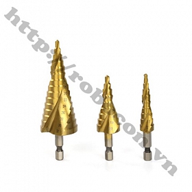 Mũi Khoan Bước-Tháp Xoắn Chuôi Lục Giác 4-12mm được làm bằng thép HSS phủ titanium phù hợp khoan các tấm vật liệu mềm như gỗ, sắt non, tấm nhôm, tấm mica, tấm alu, kim loại với các đường kính 4mm, 6mm,8mm, 10mm,12mm và chiều dày không quá 4mm.