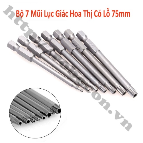 PKK865 Bộ 7 Mũi Lục Giác Hoa Thị Có Lỗ Cho Máy Khoan Và Bắt Vít 75mm