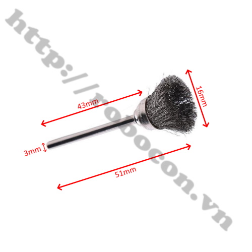 - PKK899 chổi cốc đánh bóng đánh rỉ cho máy mài loại 16mm trục 3mm để bảo dưỡng hay làm sạch các bề mặt, các góc cạnh, các chi tiết máy nhỏ bị bẩn, bị gỉ.