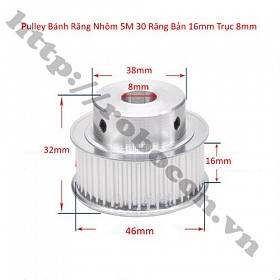 Pulley bánh răng nhôm 30 răng-5M- trục 8mm đường kính 46mm sử dụng rộng rãi trong máy công cụ, dệt vải gia đình, in ấn, bao bì thực phẩm, dây và cáp điện, thiết bị đo đạc, hóa dầu, viễn thông và các ngành công nghiệp khác trong cơ cấu ổ đĩa vành đai
