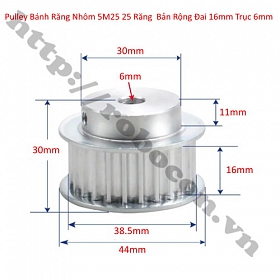 - PKK984 pulley bánh răng nhôm 5M25 25 răng bản rộng đai 16mm trục 6mm hay puli trục 6, buli trục 6 li, puly 25 răng chuẩn 5M sử dụng rộng rãi trong máy công cụ, dệt vải gia đình, in ấn, bao bì thực phẩm, dây và cáp điện, thiết bị đo đạc, hóa dầu, viễn thông và các ngành công nghiệp khác trong cơ cấu ổ đĩa vành đai.
