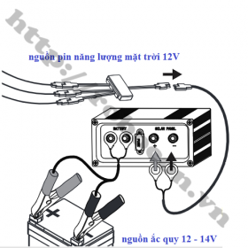 - Nguồn vào: ắc quy 12 - 14V, pin mặt trời 12V