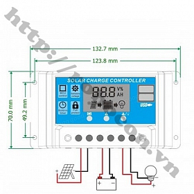 Chú ý cách đấu nối: Bộ điều khiển phải kết nối ắc quy trước, sau đó kết nối bảng năng lượng mặt trời, và cuối cùng là tải! Các trình tự tháo lắp là trái ngược với lắp đặt ban đầu là tháo dỡ tấm pin năng lượng mặt trời trước và tháo dỡ dây vào ắc quy, tải (load) sau.