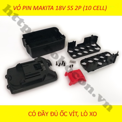- Vỏ pin máy khoan 18V 5S 2P dùng để DIY dành cho máy khoan pin, bê tông 18v, vỏ 2 hàng, đựng được tối đa 10 cell pin lion, sử dụng mạch bảo vệ 4S 14.4v hoặc mạch bảo vệ 5S 18v.