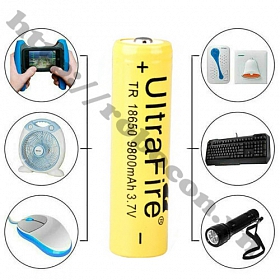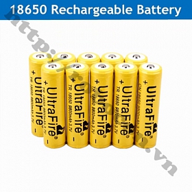 - Pin sạc 3.7v Li-Ion Ultrafire 9800mah 18650 (màu vàng) dung lượng thực tế khoảng hơn 1500mah-2000mah cho thời lượng chiếu sáng pin được lâu được sử dụng làm nguồn nuôi cho robot mô hình, dùng trong các mạch sạc pin, box sạc, làm nguồn điện dự trữ khi mất điện